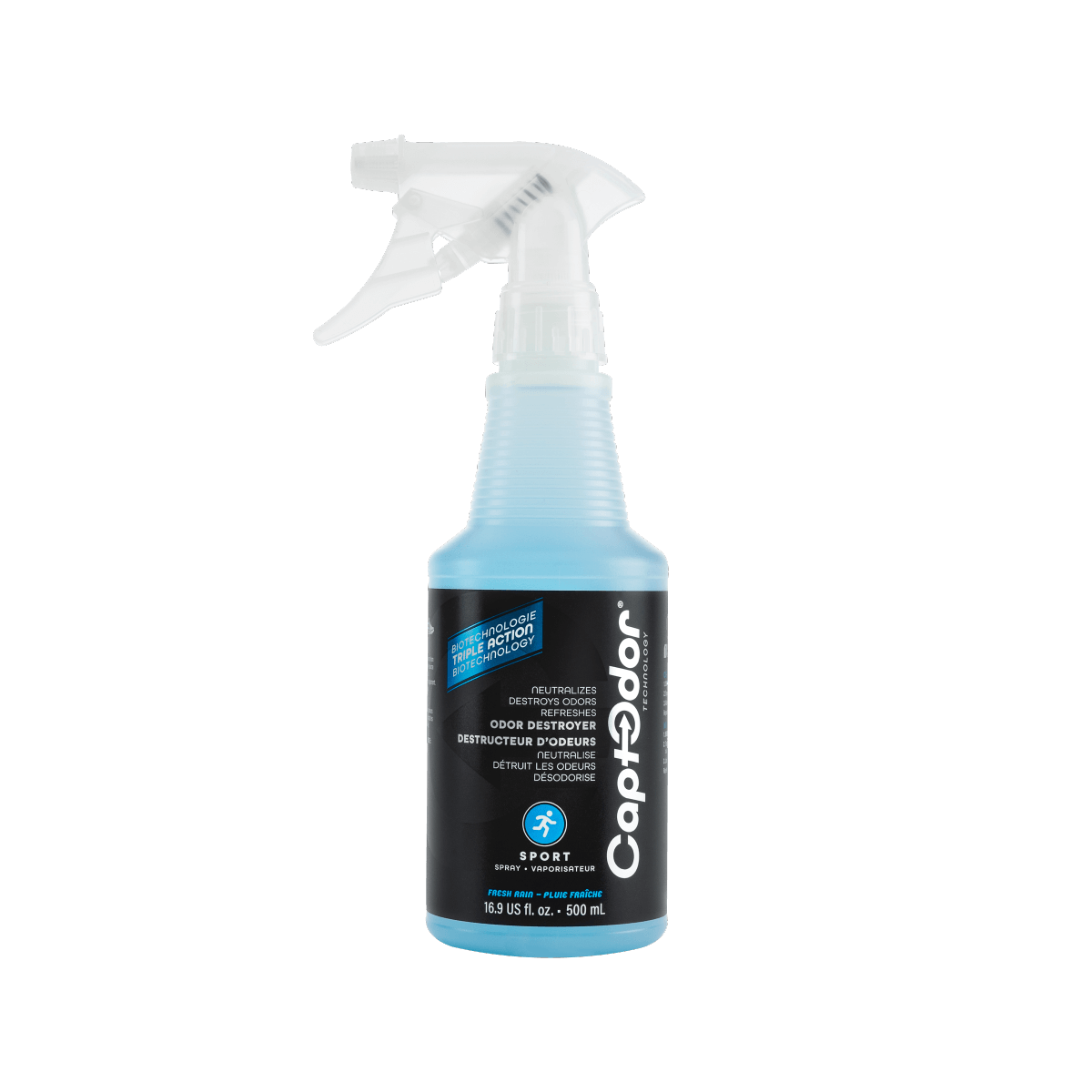 Captodor Sports Gear Odor Destroyer is a complex triple action biotechnological product developed specifically to destroy foul odors at the source impregnated in sports gear and apparel: it neutralizes, destroys and deodorizes while leaving a refreshing Fresh Rain scent for instant freshness.